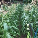 - 4 8’ rows of bantam organic corn (planted 1mo after the hybrid)