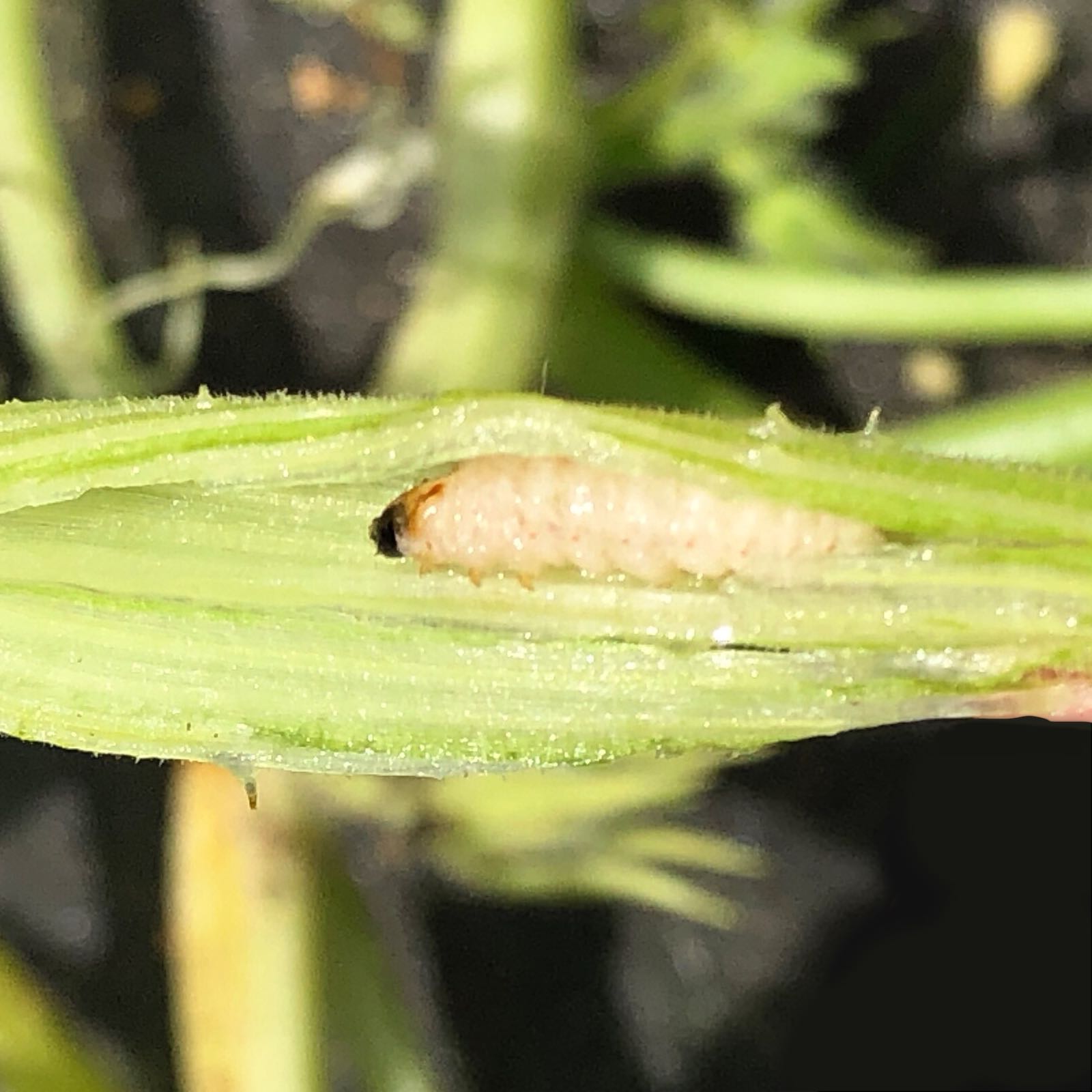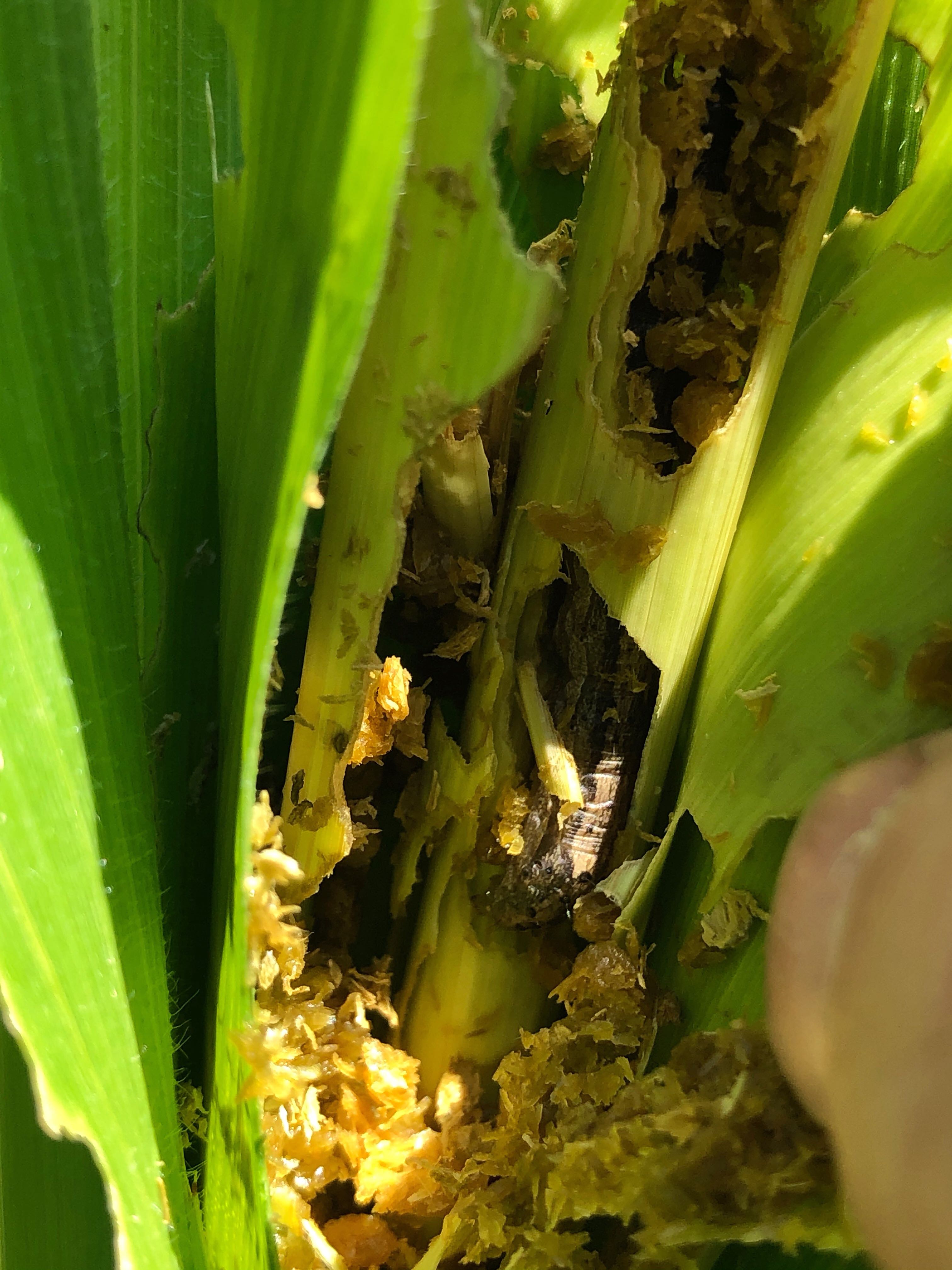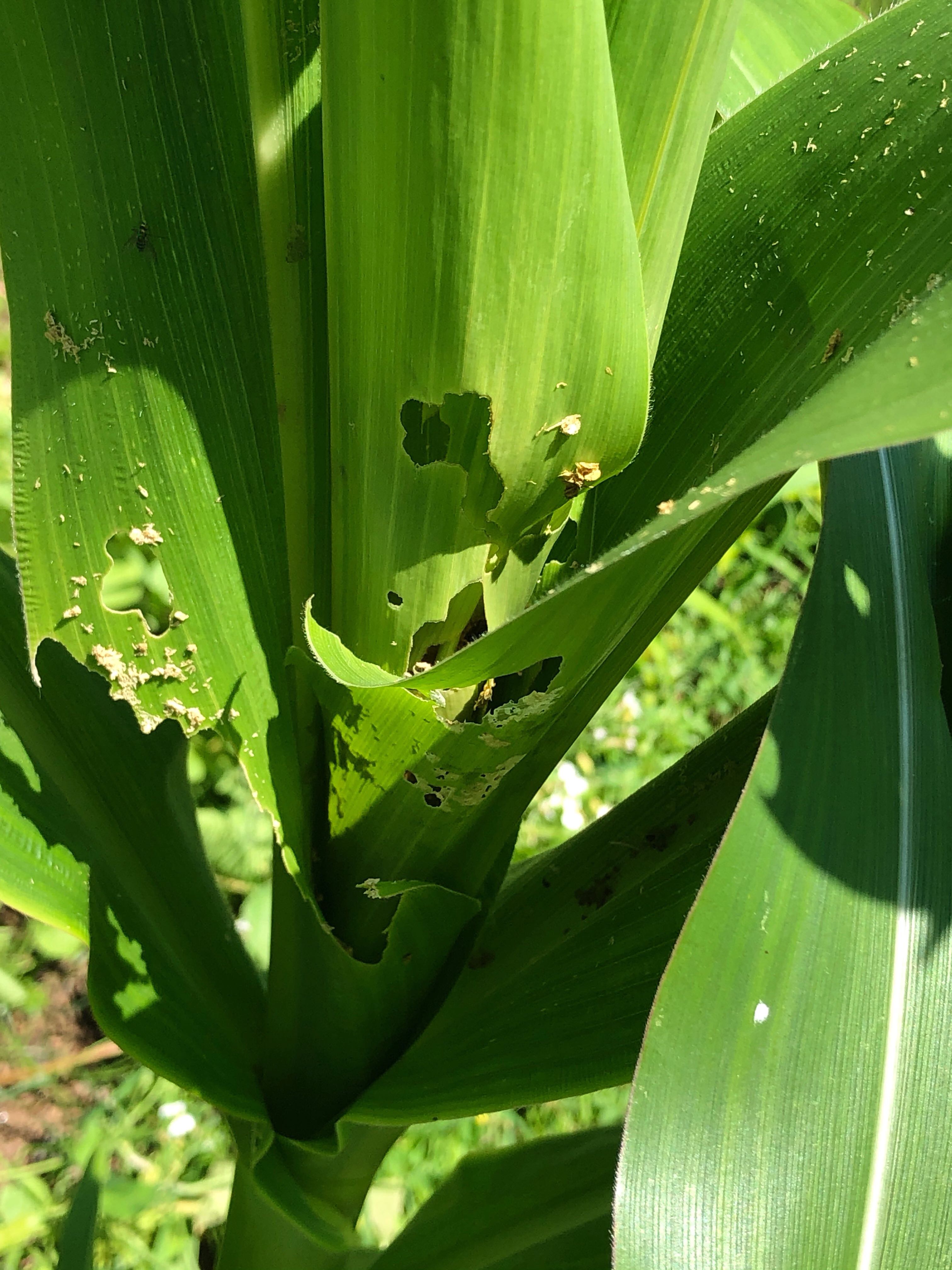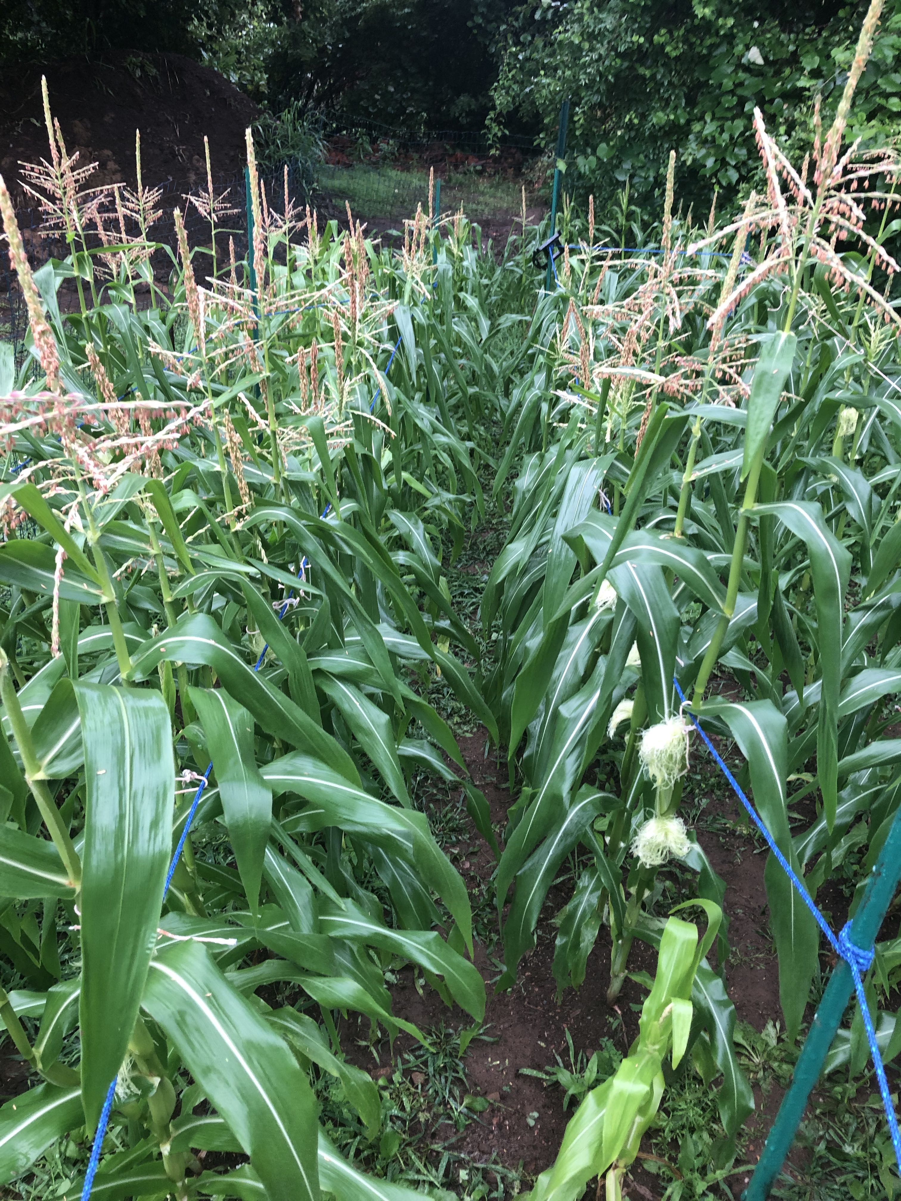 2019-04-28- Planted Sugar Enhanced Hybrid2019-05-20- Planted Indian Ornamental Corn2019-05-25- Planted Organic Sweet Corn2019-07-06- My corn appears to have been nutrient defficient - as told by the yellowing of the bottom leaves. I applied a45-0-0fertilizer in between rows directly before a rainstorm. info.2019-07-14- Tassels Emerged (SE Hybrid)2019-07-16- Silks Emerged (SE Hybrid) R1 Stage2019-07-17- After major storm most of the corn was blown over. Used stakes + ropes to tie them up and support growth. Roots do not appear to be as strong as they should be, possibly due to shallow planting2019-07-19- Pollination has begun (SE Hybrid)2019-07-21- Ear Count: 155 (SE Hybrid)2019-07-21- Noticed first tassels (Organic corn)2018-07-21- Discovered Eurpoean Corn borers consuming two stalks.2018-07-26- SE Hybrid ears have entered the R2 Stage2019-08-05- Organic Sweet corn has entered R1 Stage2019-08-16- Organic Sweet corn has entered R1 Stage