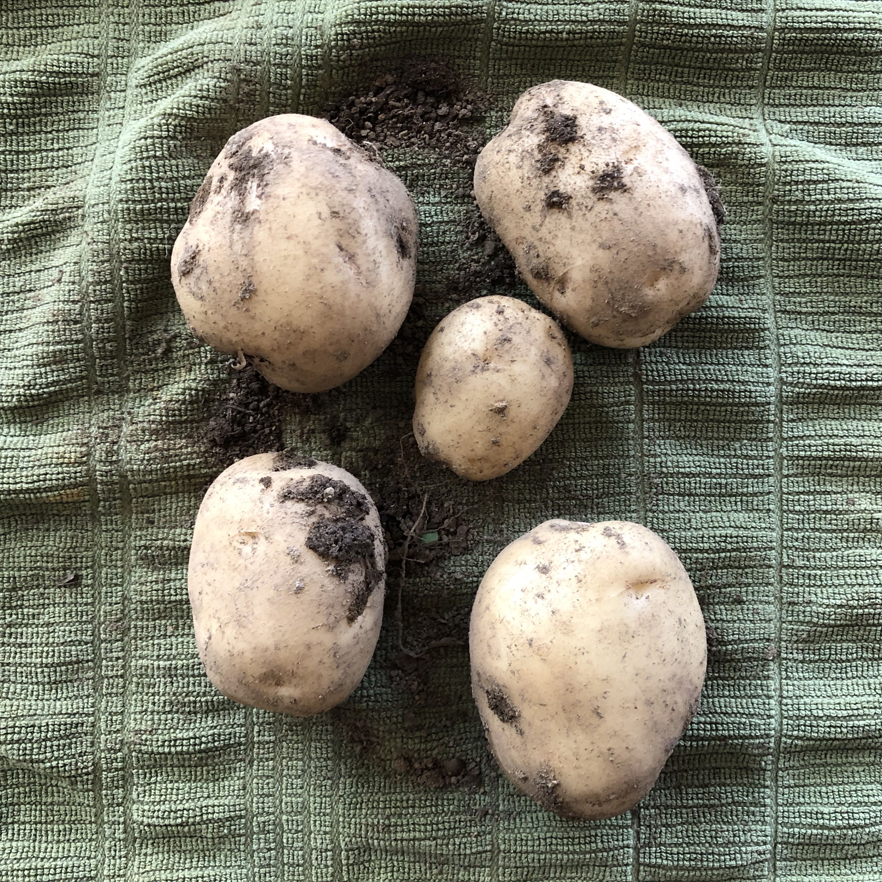 2019-05-17- Planted 10 White Superior Seed Potatoes2019-07-14- Harvested first batch of young potatoes2019-07-20- Harvested second batch of potatoes. Left smaller ones and plants for potential third batch.