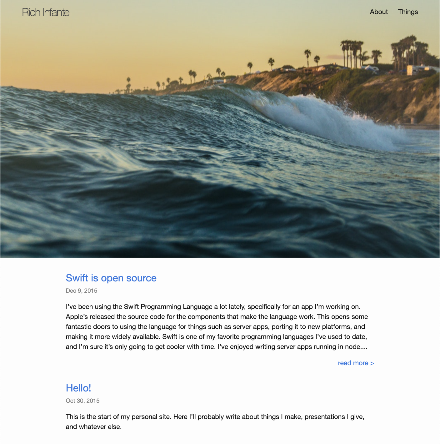 The first year it was online, I tweaked the design quite a bit. First, it started with no hero at all and just plain post text. Then I added one. I was really into these large hero images at the time.
