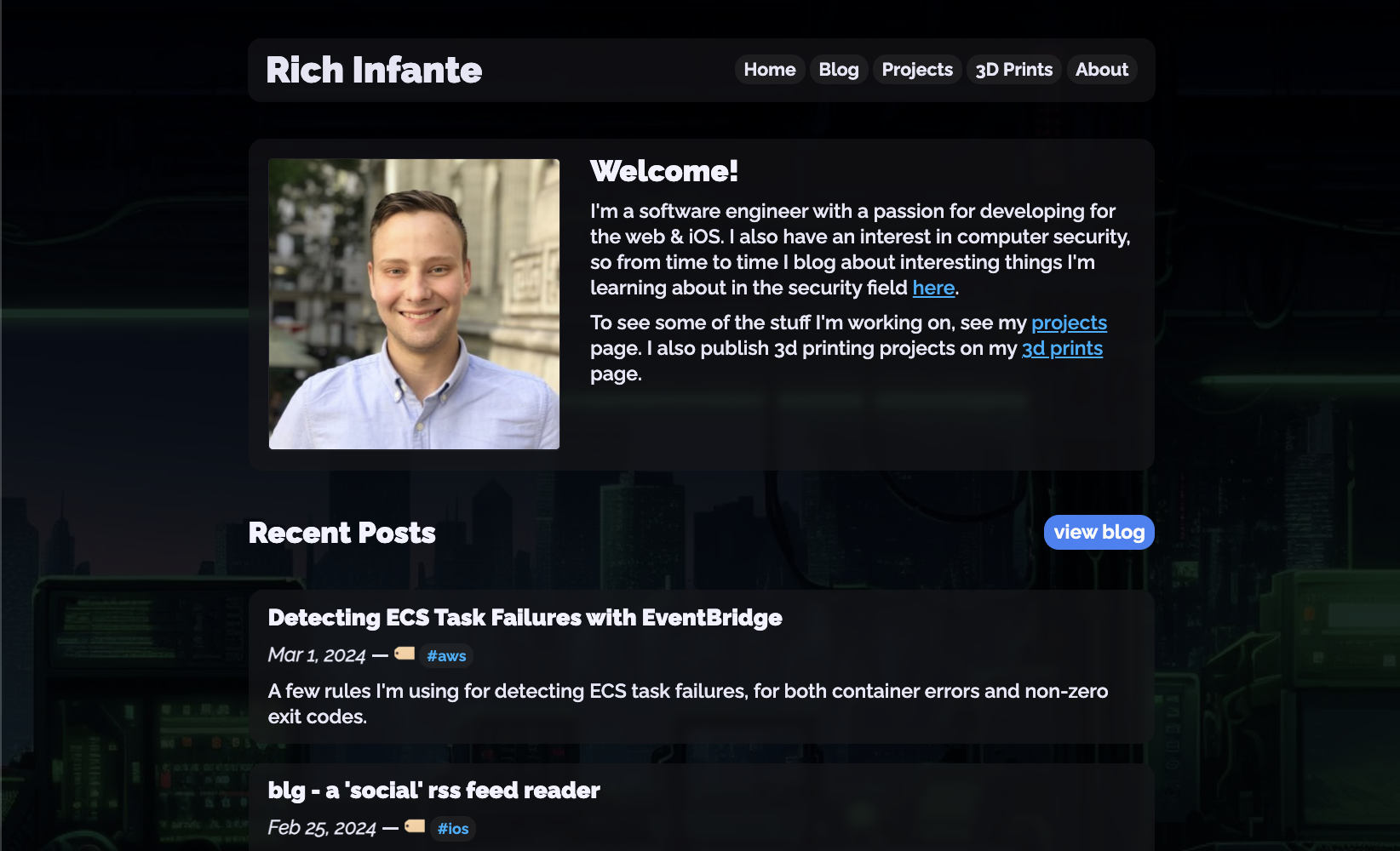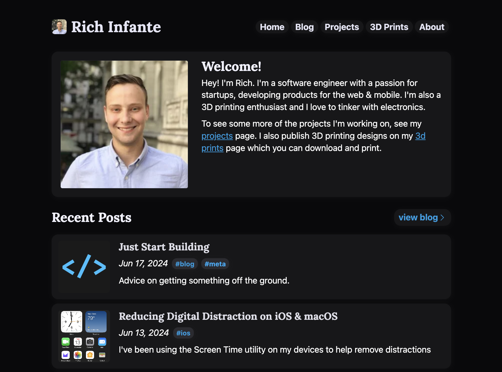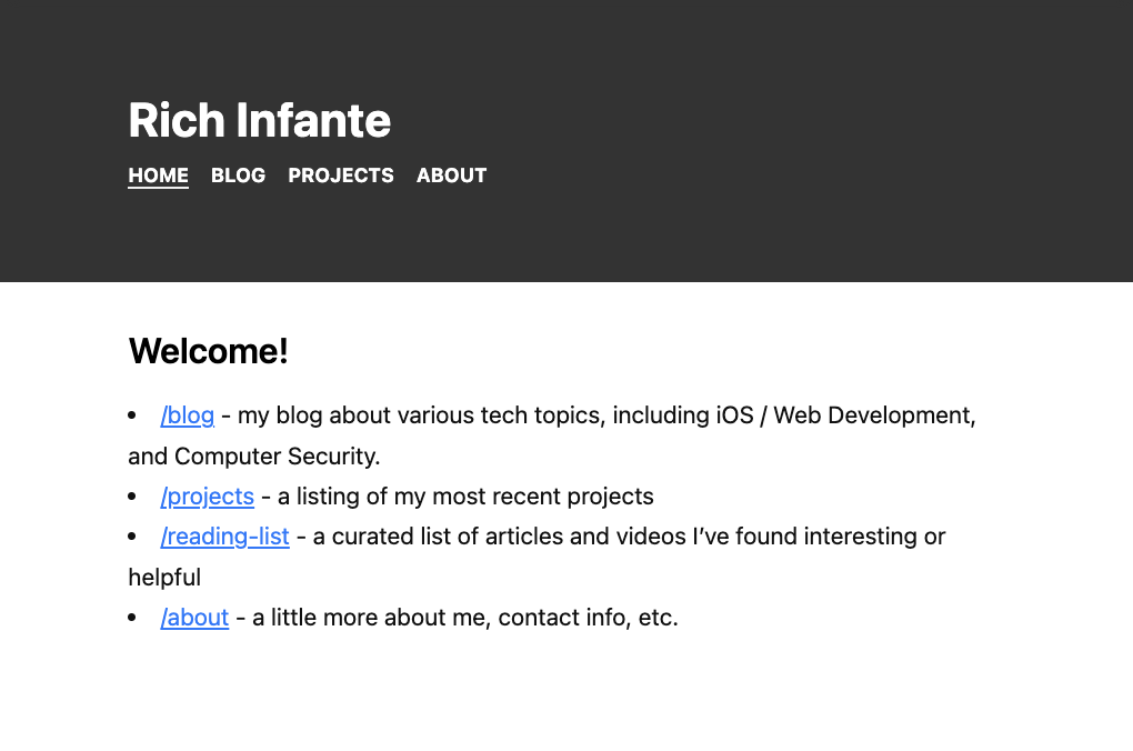 I started this site when I was back at UConn, studying for my computer science degree. I distinctly remember the day I actually decided to set up Github Pages to put the site online, in October of 2015. If I remember correctly, I was originally inspired by some tech blogs I was reading at the time. I remember some of the first iterations of the design I wrote during my CSE1102 class in the Agriculture building. And the constant redesigns and tweaks I made to the site over the years.