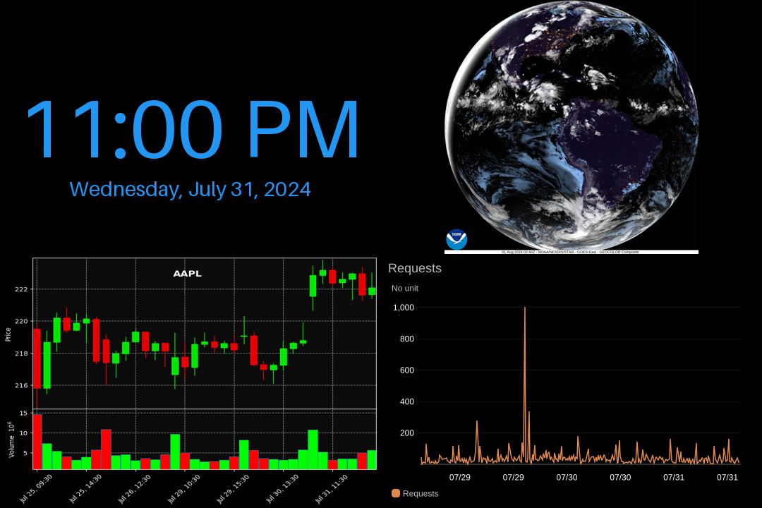 I wanted to re-implement my CloudWatch dashboard on my Raspberry Pi, but I wanted to make it more extensible and easier to work with. I decided to write a Python module that could display multiple widgets on the framebuffer, and I could easily add new widgets as needed using the plethora of Python libraries available.